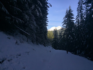The snow coverage was light enough, that for "most" of the way, we could see where the trail was under the son.