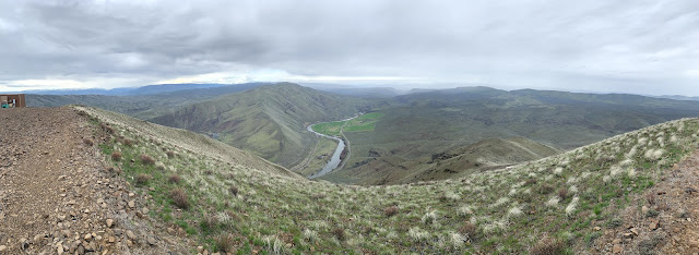 After a short rain shower, the sky began to get a bit bluer and looking northeast, we good see what I think is the Stuart Range in the distant right. Gorgeous view of the Yakima River winding its way among the hills.