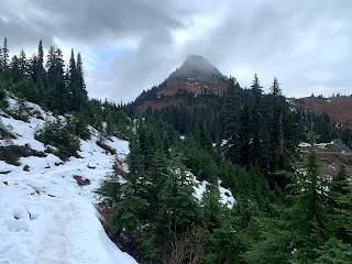 This section of the Naches Peak Loop Trail was the iciest portion, I felt more comfortable wearing micro spikes here.