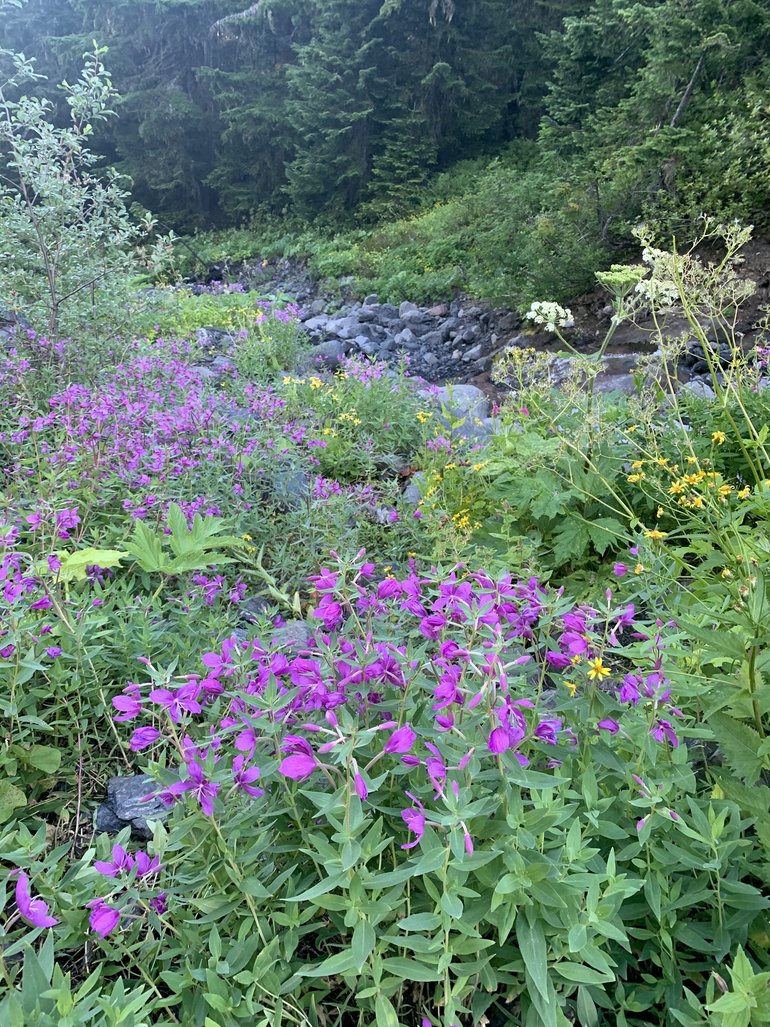 fireweed lit up by the late morning sun