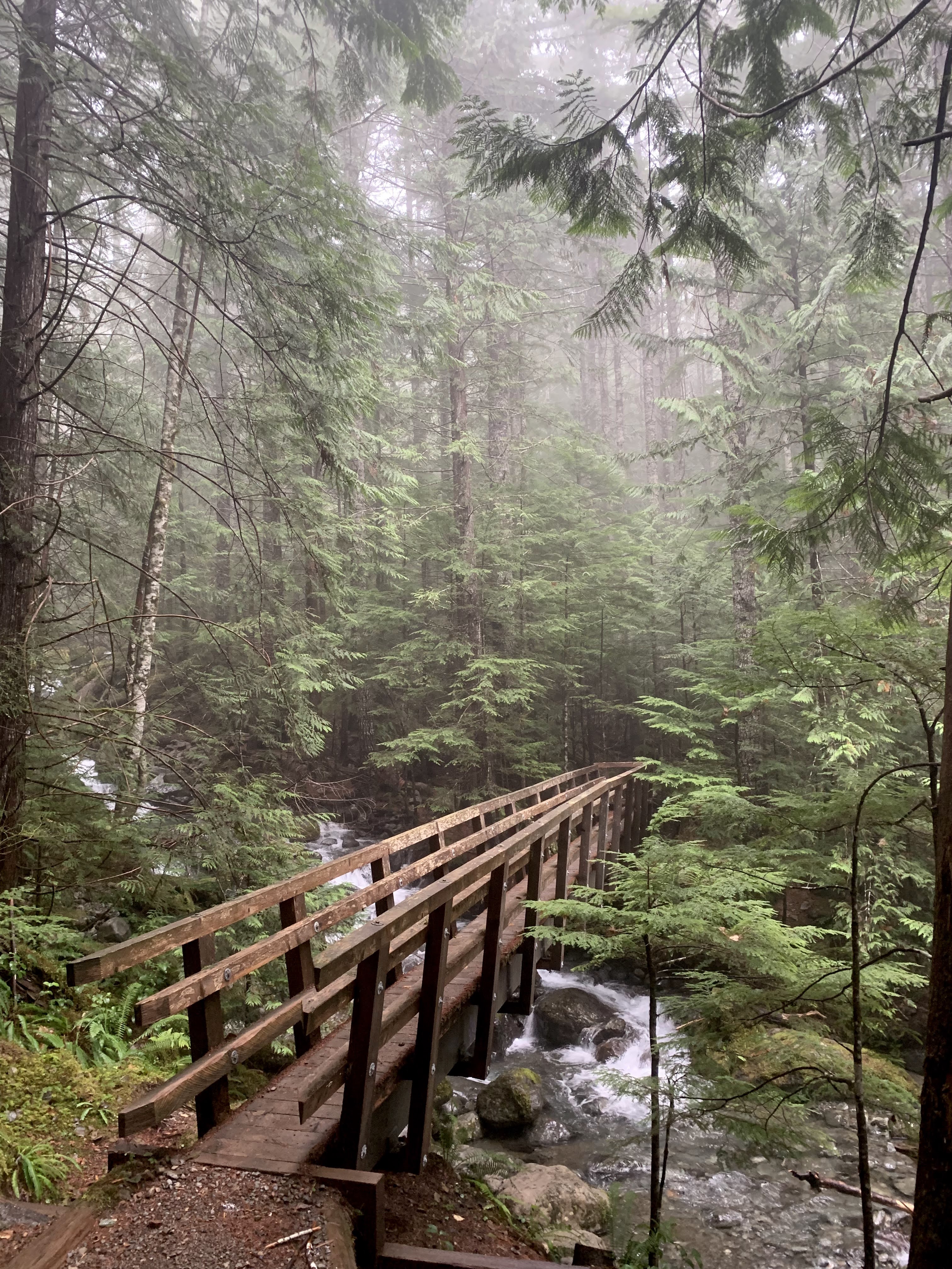 View of the bridge over the North Branch of the Big Creek as I start up the Elinor Connector Trail.