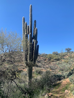We drove to Rattlesnake Bay at Bartlett Lake in Tonto National Forest to hike the Palo Verde Trail. WE hiked about 7.3 miles with 650 ft of overall gain. It was a chilly 36F when we started, but the views were wonderful and the day got warmer as we hikes. View by Rattlesnake Bay