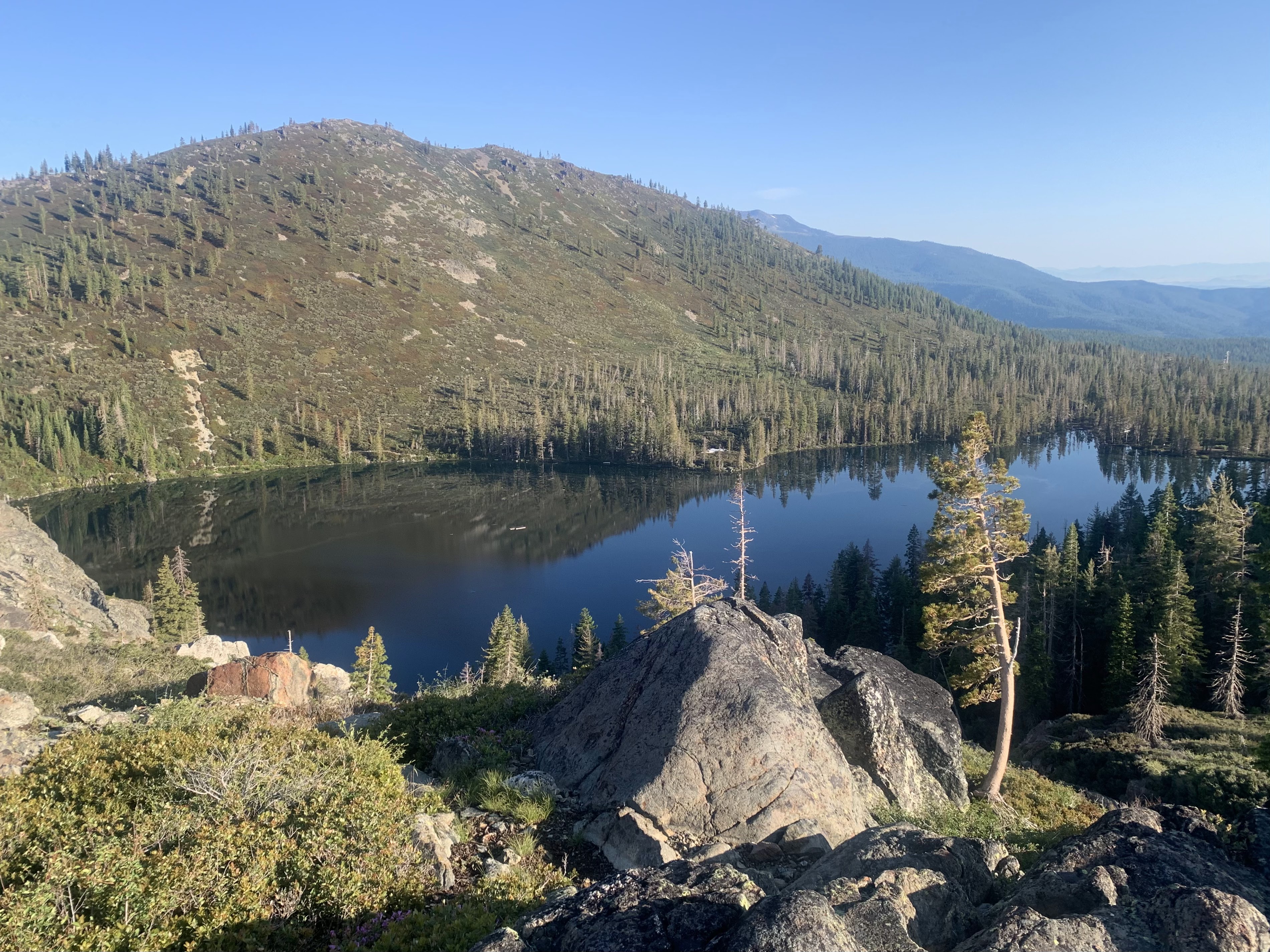 We drove up to Castle Lake in the Shasta Trinity National Forest to hike up to Heart Lake and up to the Castle Lake Viewpoint, as well as up to the east end of the ridge above Heart Lake. Overall 3.8 miles with 900 ft of gain. View of Castle Lake this morning at the beginning of the hike.