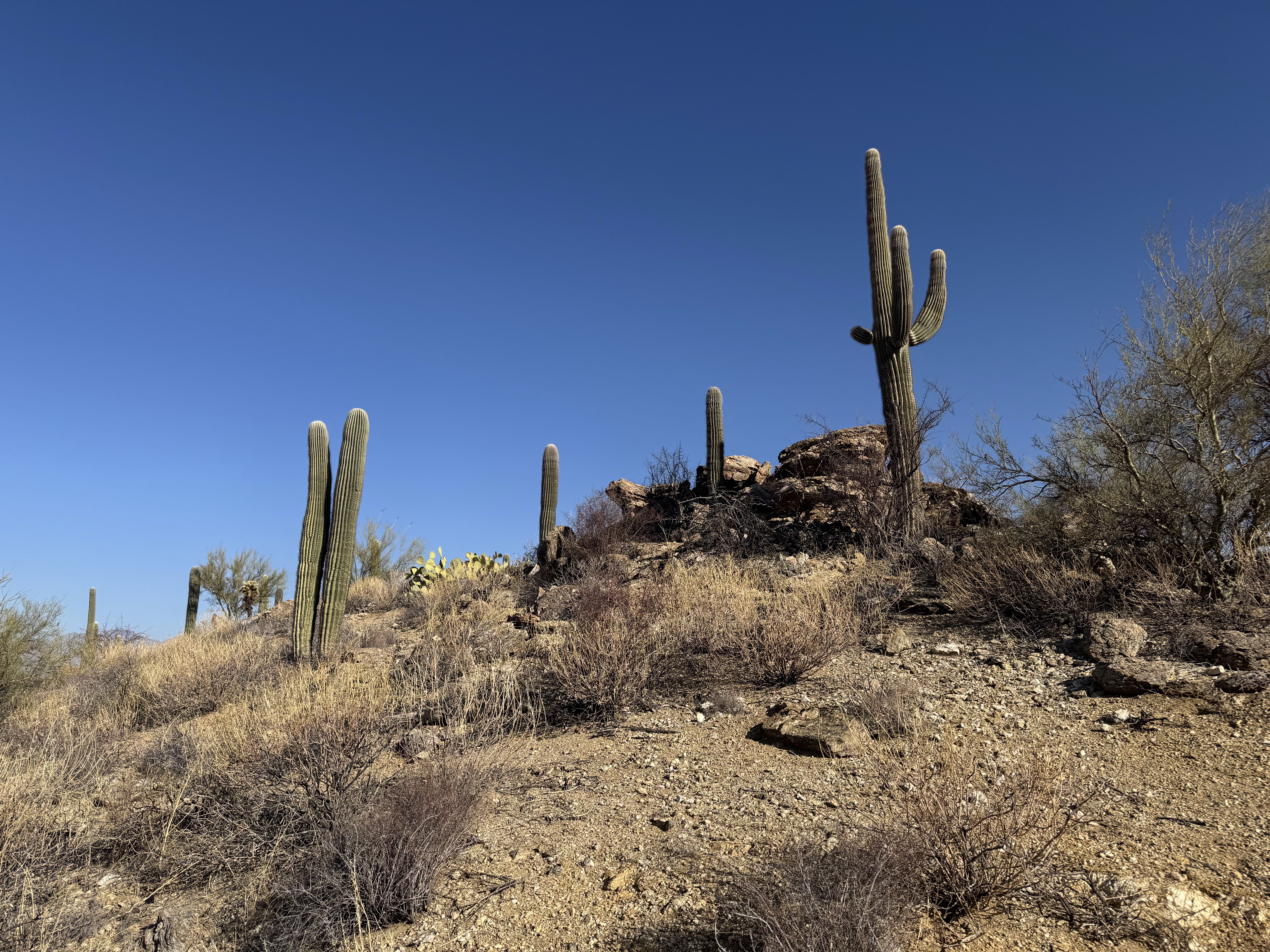 We drove to the Douglas Spring Trailhead in Saguaro (East) National Park this morning and hiked up to Garwood Dam and Wildhorse Tank, for 5 miles and 500 ft of overall gain. We went up the Douglas Spring Trail for 0.2 miles, then hiked the Garwood Trail up to the Carillo Trail turning left, where we soon saw the Garwood Dam and continued up the draw for a short ways before returning to the trail. We continued on the Carrillo Trail until in intersected with the Wildhorse Trail. We went up the short 0.3 miletrail to the right, up to Widhorse Tank, where there was some water. We returned down the Wildhorse Trail, to within 0.1 mile from the Wildhorse Trailhead, where we turned right to take the Stock Bypass Trail back to the Douglas Spring Trailhead. A great morning hike!